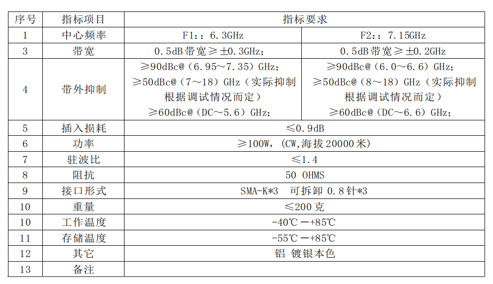滤波器订购须知